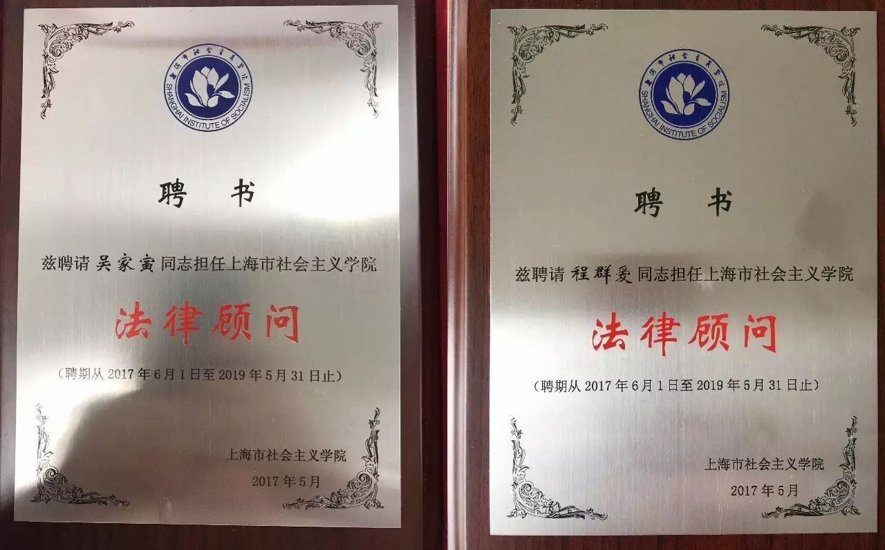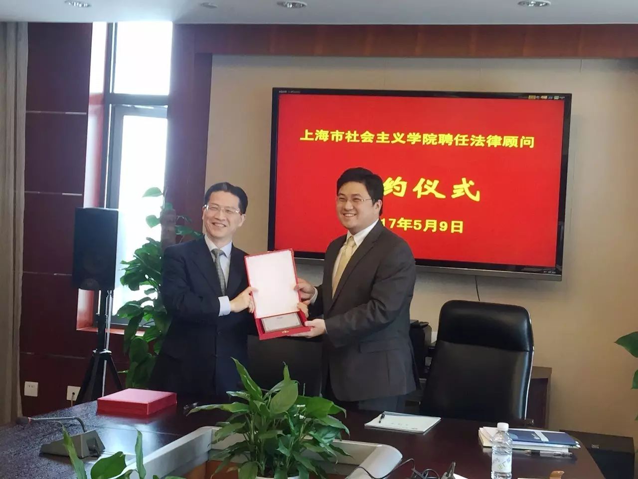 5月9日上午,上海市社会主义学院召开法律顾问受聘仪式,邦信阳中建中汇吴家寅律师和程群爱律师受聘并担任首届社会主义学院法律顾问,聘期为2年。