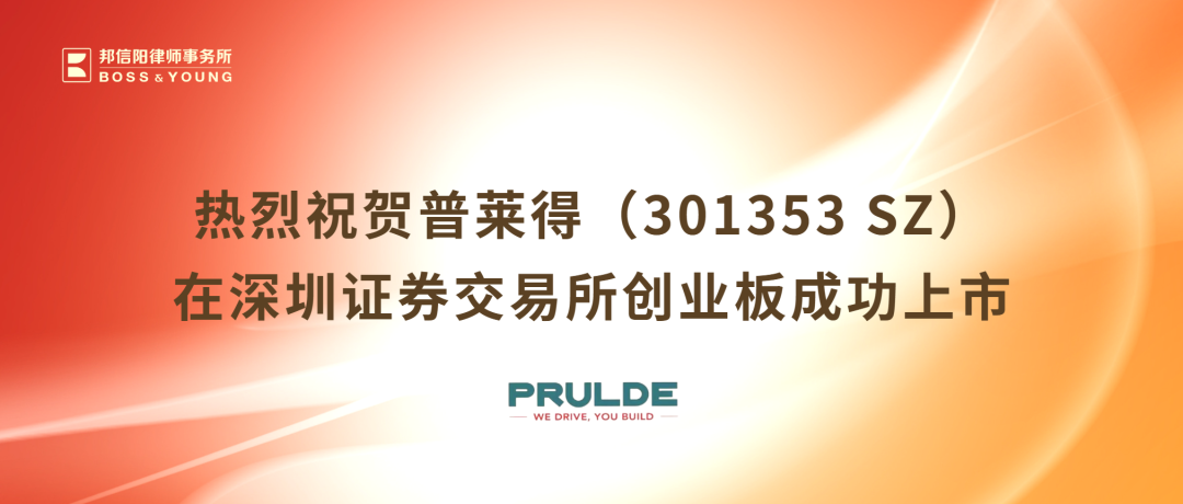 2023年5月30日,由上海邦信阳律师事务所提供全程法律服务的浙江普莱得电器股份有限公司(普莱得301353 SZ),在深圳证券交易所创业板成功上市。
