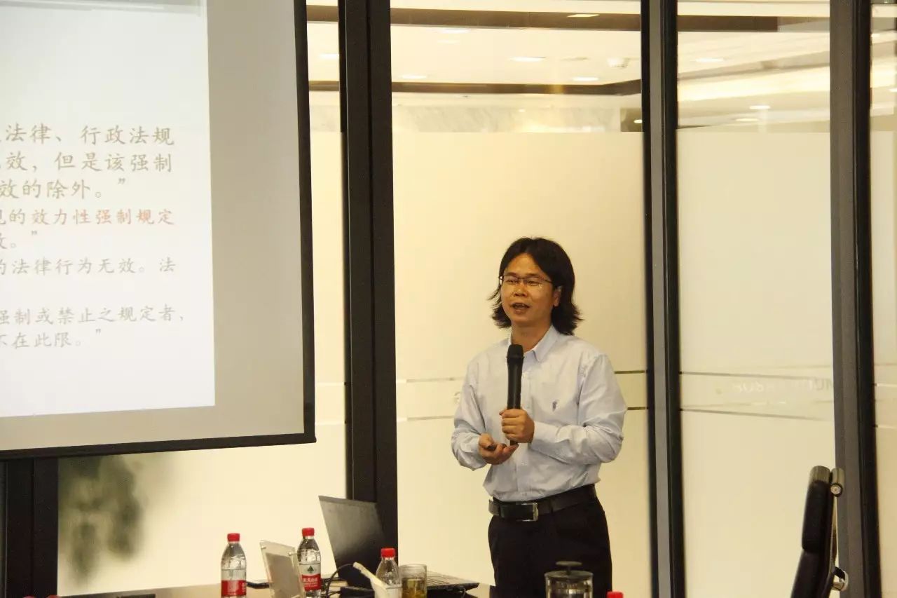 论坛中,朱教授为现场嘉宾深入解读了《民法总则》中的第153条第1款并具体探讨了强制秩序与法律行为,朱教授对比了德国民法典、台湾地区“民法典”与我国民法典中关于这一条款的差异,从比较法方面解释了中国关于这一法条的立法含义和现实意义,并由此展开,阐述了法律解释的一般理论。“法条的意义对于法律人来说就是真理”,进行各种不同的法律解释是通向真理的过程。朱教授讲到,对法律的解释应该从实际问题出发,具体问题具体看待。这一点得到了在座嘉宾的广泛认同。