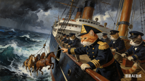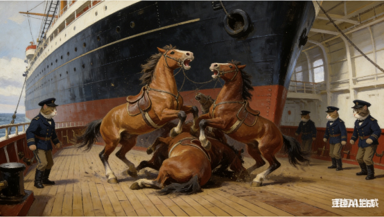 航行至好望角附近时,遭遇剧烈风暴。为保全船体稳定,船长下令将部分马匹抛入大海。