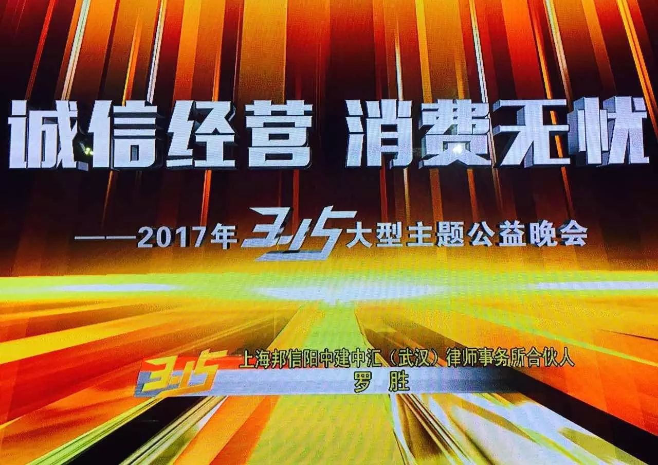 邦信阳中建中汇武汉分所合伙人罗胜律师应邀参加此次“3·15”晚会,并对网络消费、企业诚信两个方面的三个案例所呈现的法律问题作出了精彩点评。