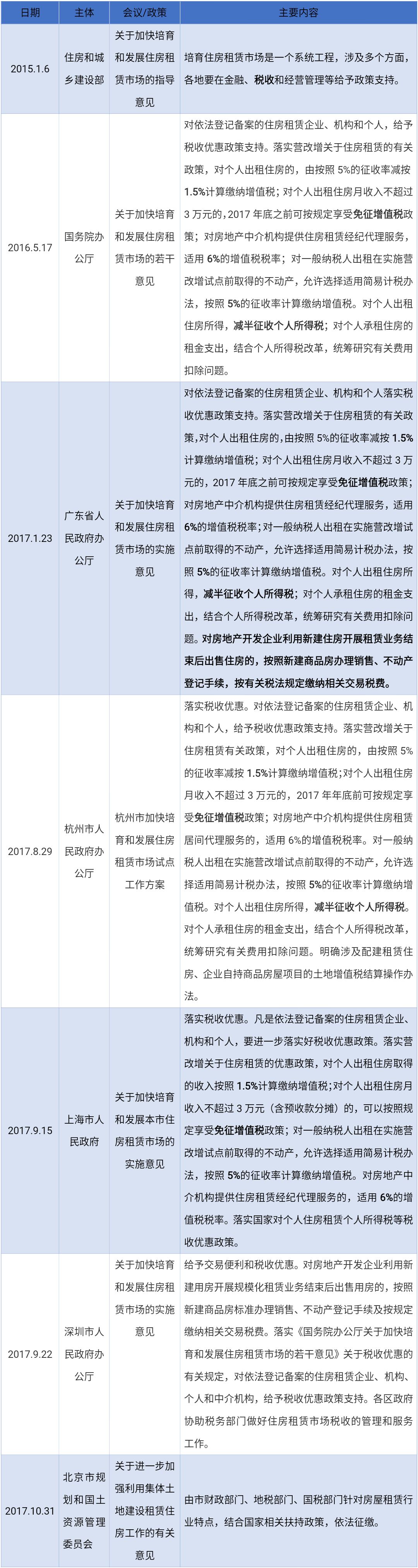在国务院办公厅2016年《关于加快培育和发展住房租赁市场的若干意见》规定的税收优惠政策基础上,上海、浙江、广东、深圳等地也在其配套实施意见相关文件中进行了贯彻落实,即: