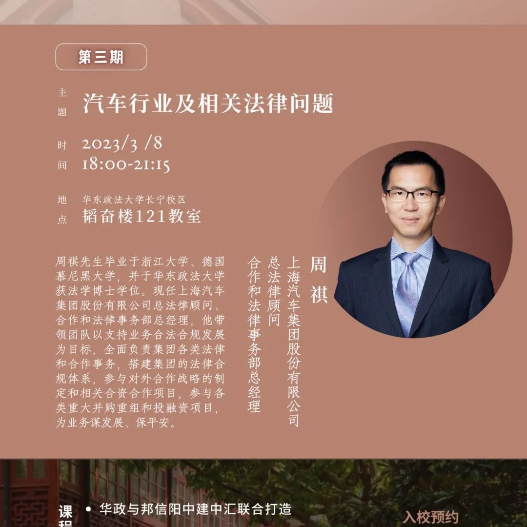 讲座预告 | 华东政法大学“民商法实务课程”第五期第三课:汽车行业