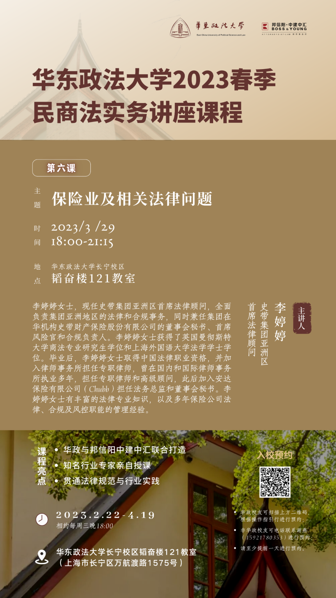 邦信阳中建中汇 & 华政2023春季民商法实务讲座课程第1期 | 预告