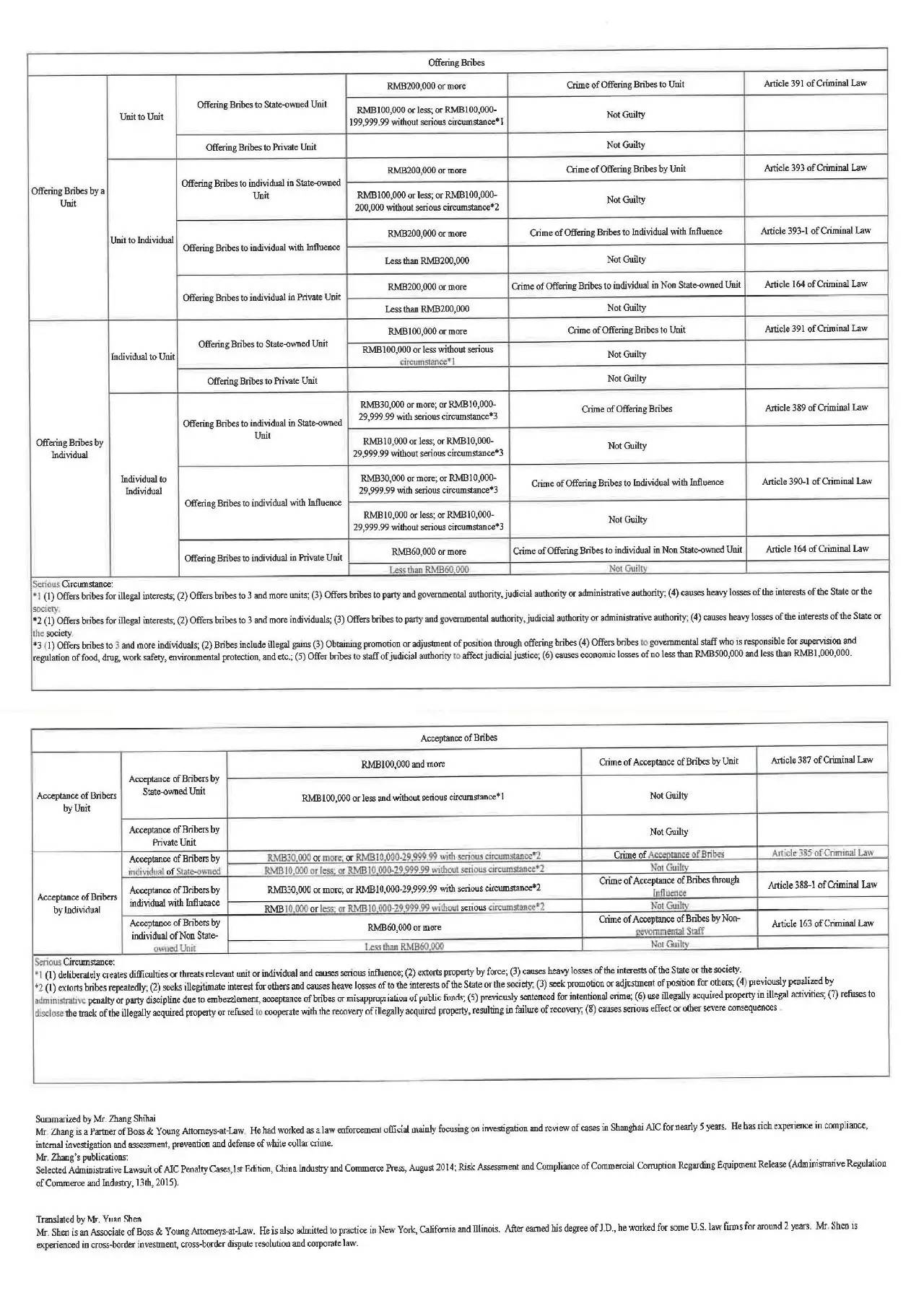 为方便广大同仁开展商业贿赂风险的评估、控制工作以及作为执法办案参考,上海邦信阳中建中汇律师事务所张士海律师结合现行有效的法律、司法解释规定,整理了行贿、受贿行为的刑事追诉标准表格,供同行批评交流,如下: