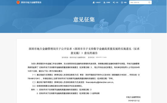 3. 深圳市地方金融管理局就《深圳市关于支持数字金融高质量发展的实施意见(征求意见稿)》公开征求意见