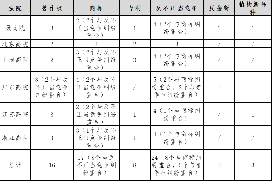 而反观北上广江浙高院,除个别年份外,历年案例中反不正当竞争案件均不在少数:
