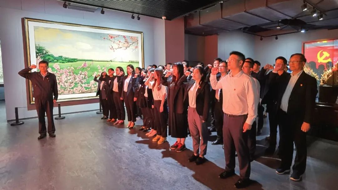 入党誓词,是党员对党和人民做出的庄严承诺,一代又一代中国共产党人,面对鲜红党旗,右手握拳,一字一句许下铮铮誓言。在龙华烈士纪念馆内,全体同志面向党旗列队,举起右拳,高声宣读重温入党誓词。