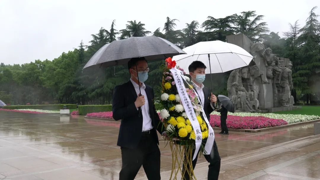 细雨纷飞中,烈士陵园松柏静立,花朵悄悄相伴,细雨迷蒙润物无声,时相宜,整个祭扫过程始终保持庄严肃穆。在龙华烈士陵园纪念碑广场前,两位代表向革命先烈们献上花篮。随着庄严的《义勇军进行曲》响起,全体同志静默肃立,无数英雄先烈为革命抛头颅洒鲜血英勇就义的场景仿佛就在眼前,怀着对先烈们无比崇敬的心情,全体同志向为共产主义事业献身的龙华烈士们三鞠躬,表达对革命先烈们的缅怀和哀思之情。