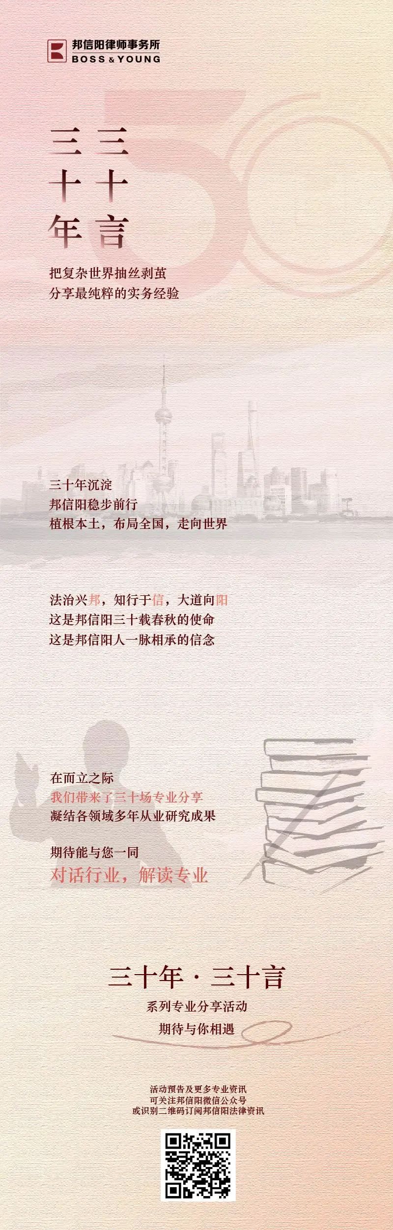 声明:本文仅代表作者本人观点,不得视为邦信阳律师事务所及律师出具的正式法律意见或建议。转载请注明来自“邦信阳律师事务所”公众号。如您有意就相关议题进一步交流或探讨,欢迎与我们联系,电话:+8621 23169090,邮箱:shanghai@boss-young.com