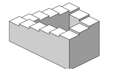 且平面与立体的表达是不同质的,比如彭罗斯楼梯,平面可实现表达,但立体不可实现表达: