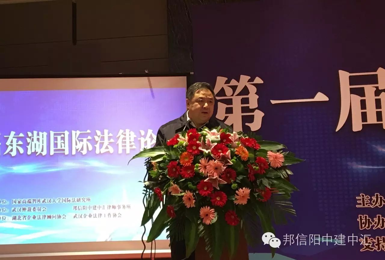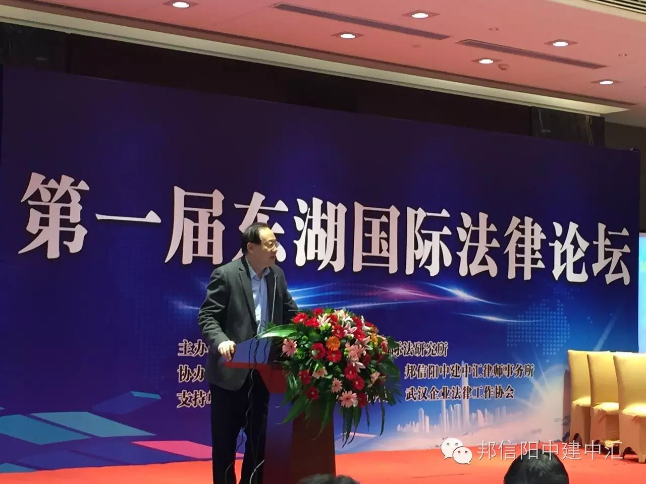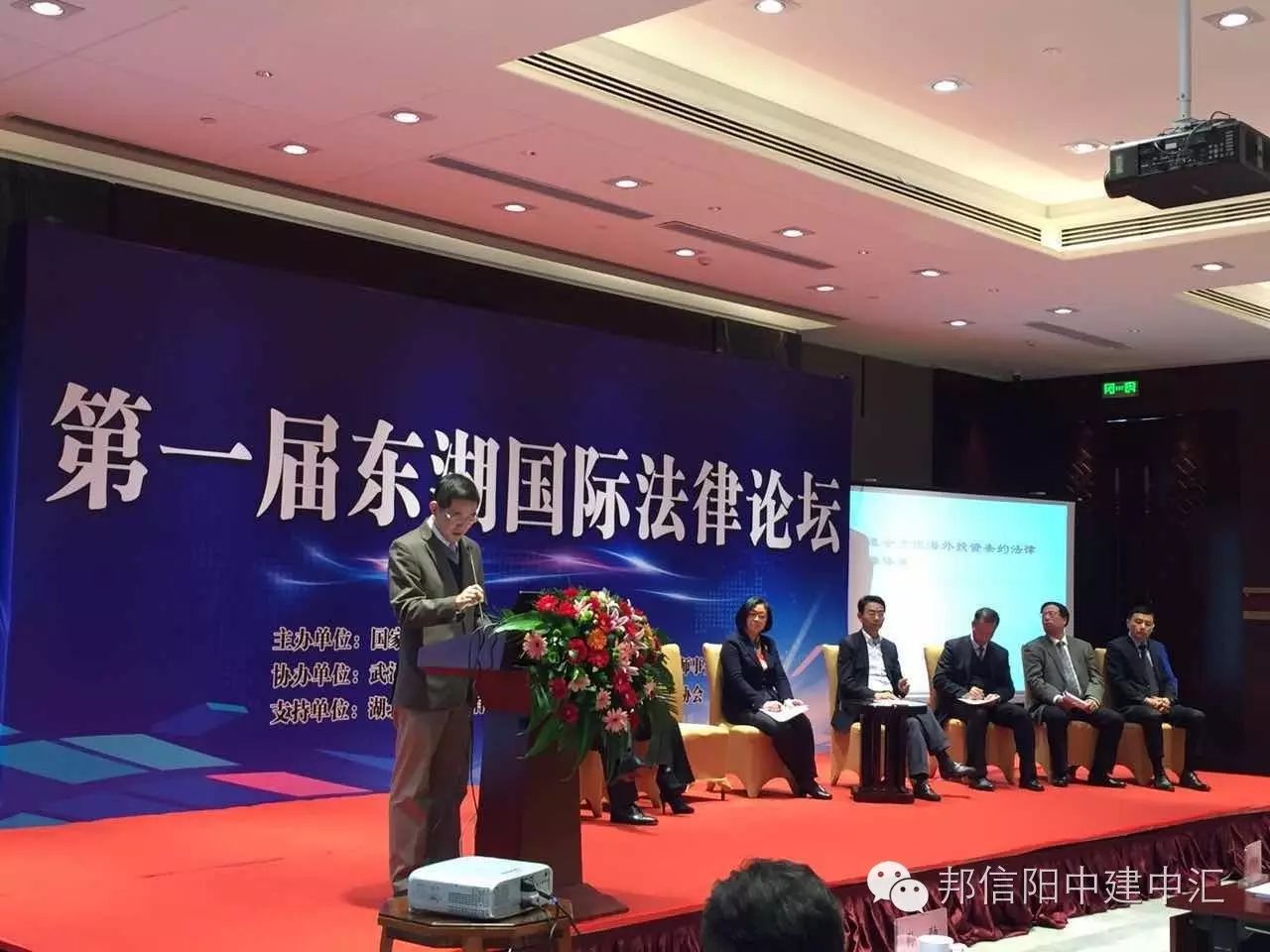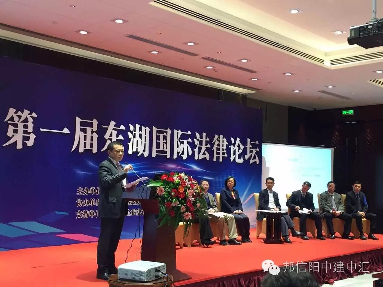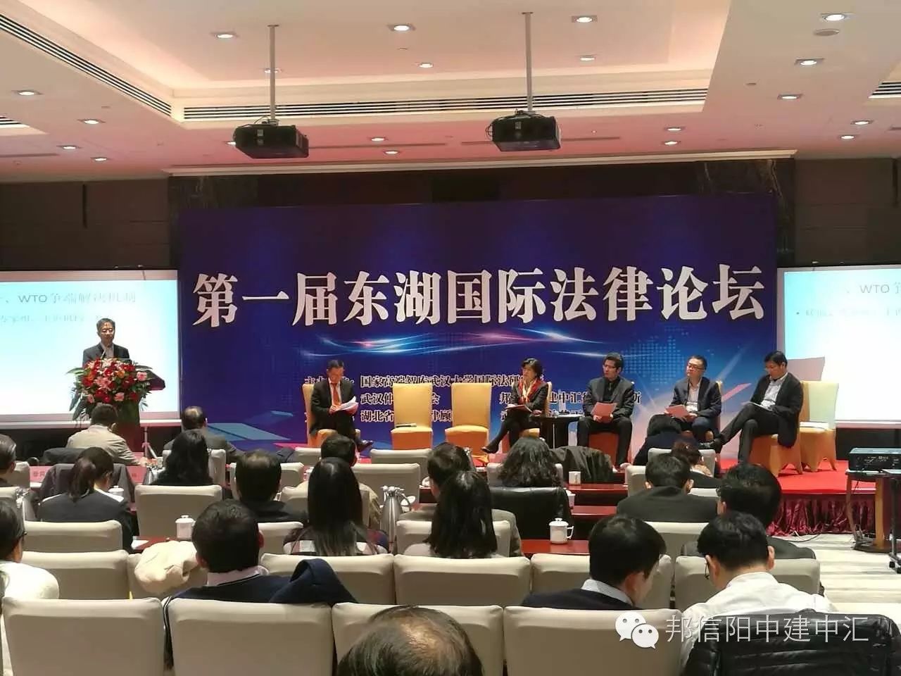 2016年11月10日下午,由邦信阳中建中汇律师事务所发起,国家高端智库武汉大学国际法研究所主办,武汉仲裁委员会、邦信阳中建中汇协办的第一届东湖国际法律论坛在武汉隆重举行。本届论坛以“‘一带一路’建设的国际法保障”为主题,邀请了来自国家司法机关、国家高端法律智库、企业、律师等的数十位高级代表与权威专家,重点围绕“企业海外权利保护”“ 海外争端解决”两大议题进行交流与讨论。