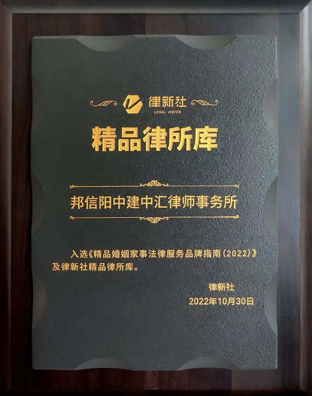 10月30日(星期日)下午13:30,由华东政法大学公共法律服务研究院、律新社主办的《精品婚姻家事法律服务品牌指南(2022)》发布会暨“千万家和”婚姻家事服务生态圈公益共建行动启动仪式隆重举办。邦信阳中建中汇律师事务所凭借婚姻家事领域杰出的专业实力入选《精品婚姻家事法律服务品牌指南(2022)及律新社精品律所库,合伙人程群爱律师、高兴律师、殷滤律师(武汉)入选婚姻家事律师名录(按拼音首字母排序)。