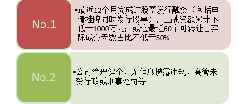 根据《分层管理办法》,为进入创新层设定了如下门槛: