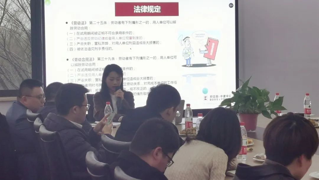 朱敏佳律师以劳动法及劳动合同法具体法条规定为依据展开阐述。朱敏佳律师从内容合法、程序合法、公示三个方面介绍了规章制度制定的重要程序,并对何种是有效的规章制度、有效的规章制度公示方法进行了详细讲解,对严重违反规章制度的行为的认定及关键证据、解除程序合法等进行了提示及建议。