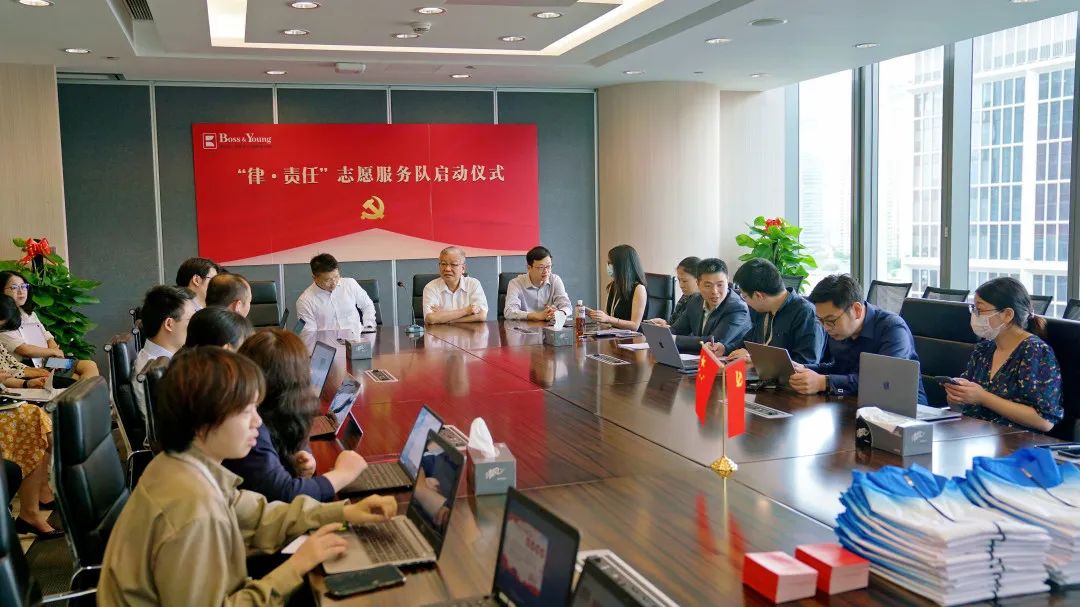 为庆祝中国共产党成立101周年,充分发挥律所党组织战斗堡垒作用和党员先锋模范作用,更好地传播志愿者服务理念,推动志愿服务的深入开展,7月1日下午,上海邦信阳中建中汇在金外滩15楼会议室举行“律•责任”志愿者服务队启动仪式。律所党委成员及40余名志愿者参加仪式。仪式由党委书记、管理合伙人赵亮波主持。