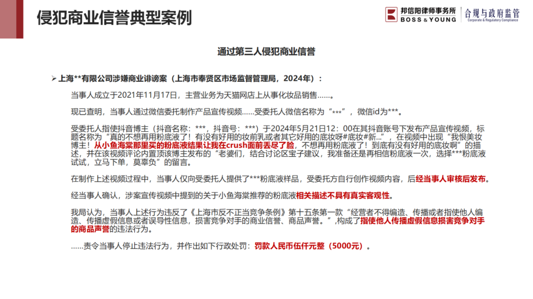 上海邦信阳律师事务所合伙人杨涛律师对《竞争法草案》中与宣传和推广行为有关的条款修订情况进行了分析,并具体结合法律沿革及执法案例,从混淆行为、虚假宣传、侵犯商业信誉、有奖销售等多个方面进行了分享。杨律师同时针对《竞争法草案》中有关平台企业与大型企业的新增条款进行了详细分享,为平台企业与大型企业在未来新《反不正当竞争法》下如何加强合规经营给出了建议。