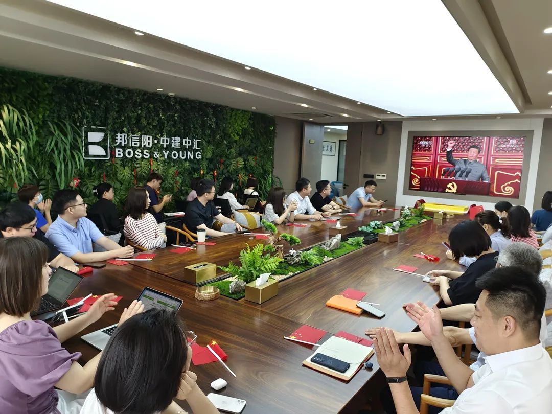 除了上海总部,邦信阳中建中汇各地分所党组织也积极组织所内党员收看大会直播。在秦岭脚下,西安分所的党员们重温入党誓词,重忆入党初心;在西子湖畔,杭州分所精心准备了主题蛋糕为党庆生,青年党员们共话新时代青年的使命与担当;在长江之滨,武汉分所的党员们汇聚一堂,共同唱响《没有共产党就没有新中国》,用歌声为党的百年华诞献礼。此外,北京分所、南京分所、宁波分所、厦门分所的党员同志们亦集中收看了大会直播,以多种形式为党献上祝福,共同庆祝中国共产党成立一百周年。