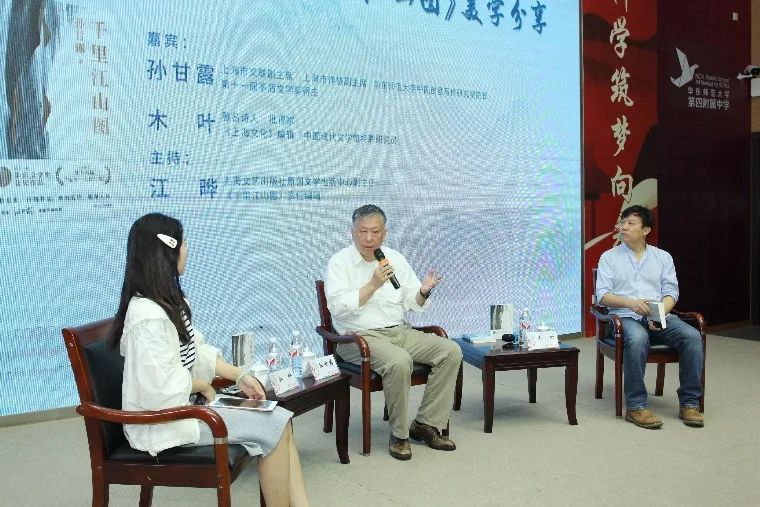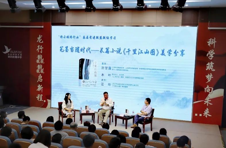 (图为:《千里江山图》的专题阅读分享-嘉宾从左到右分别是:江晔、孙甘露、木叶)