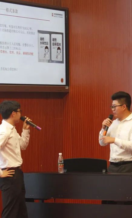 随后,律师团队通过场景呈现,亲自演绎了“未成年人游戏充值”、“高空抛物”、“格式条款”等生活案例,并与学生进行了面对面的互动,生动有趣的情景剧让在场的所有学生清晰地认识到每个公民应有的责任和义务,以及法律所赋予每个人的权利。