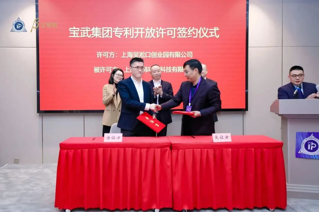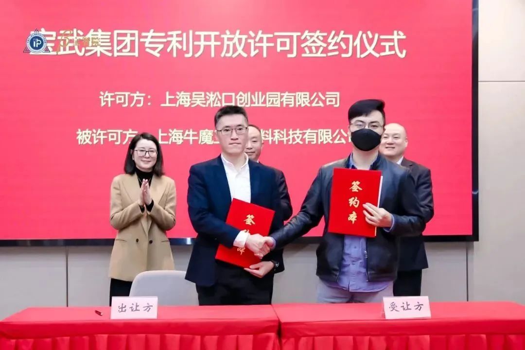 宝武集团签约代表(上海吴淞口创业园有限公司)分别与上海宝韩环保科技有限公司、上海牛魔王新材料科技有限公司签署开放许可协议。