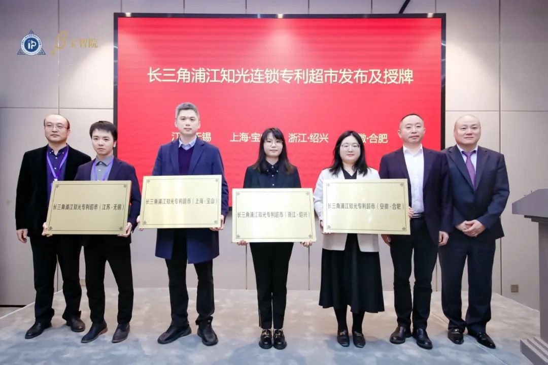 会上,首批4家长三角浦江知光连锁专利超市发布及授牌,分别是:江苏无锡、上海宝山、浙江绍兴、安徽合肥。