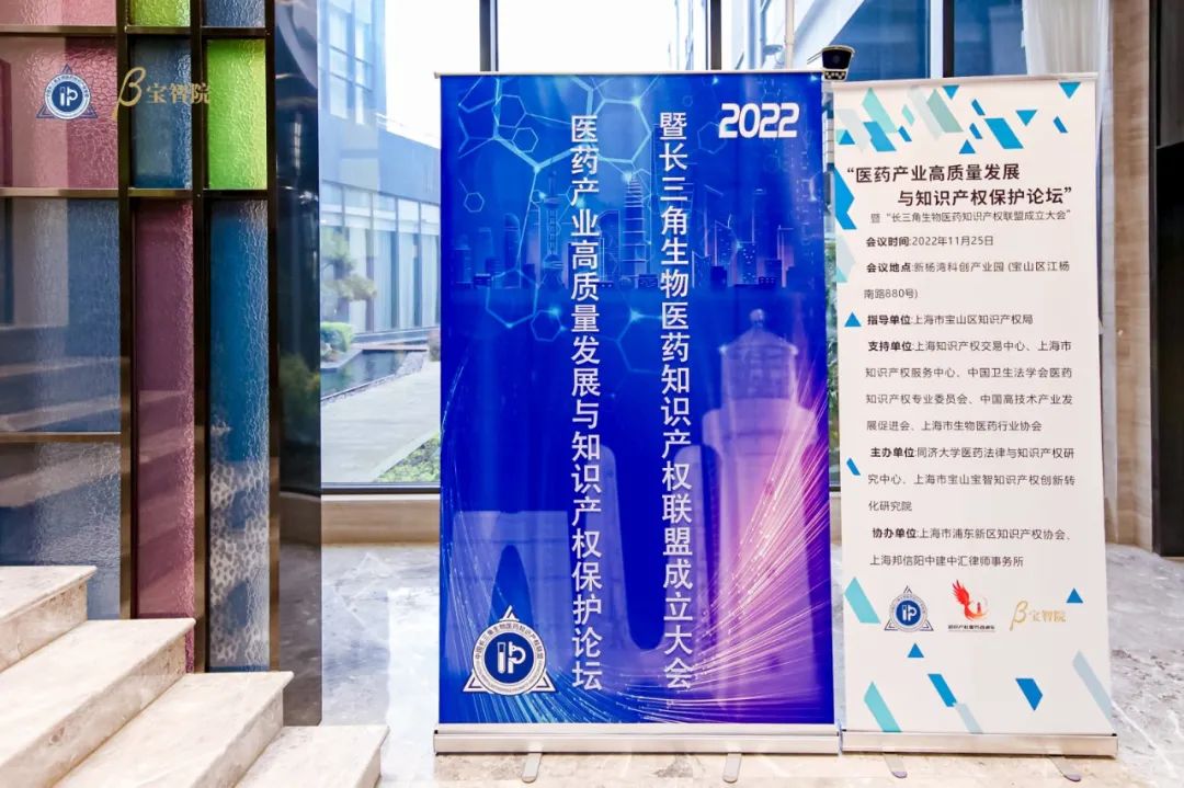 2022年11月25日,2022“医药产业高质量发展与知识产权保护论坛”暨“长三角生物医药知识产权联盟成立大会”于新杨湾科创产业园圆满举办!大会由上海市宝山区知识产权局指导,上海知识产权交易中心、上海市知识产权服务中心、中国卫生法学会医药知识产权专业委员会、中国高技术产业发展促进会、上海市生物医药行业协会支持,由同济大学医药法律与知识产权研究中心、上海市宝山宝智知识产权创新转化研究院主办,上海市浦东新区知识产权协会、上海邦信阳中建中汇律师事务所协办。现场汇集了国内众多知识产权相关部门、行业组织、专家学者、实务人才,在多元观点碰撞中,为我国生物医药知识产权相关法律制度完善及行业发展贡献智识与力量。会议同时采用现场直播的方式,逾1.6万人次观看直播。