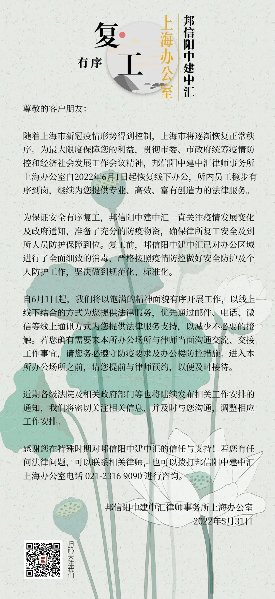 邦信阳中建中汇上海办公室有序复工!