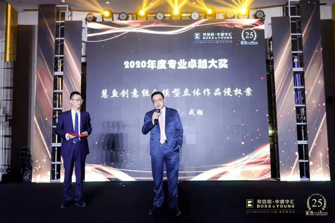 慧鱼创意组合模型立体作品侵权案荣获“2020年度知识产权大奖”及综合大奖——“2020年度专业卓越大奖”,承办律师为戎朝律师。