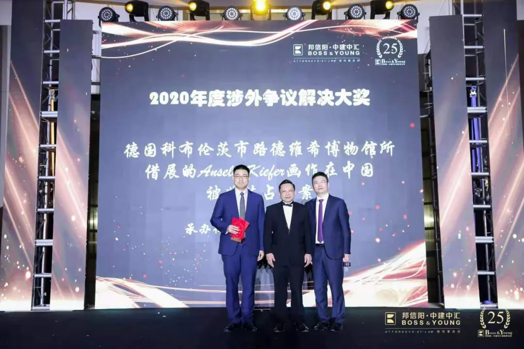 德国科布伦茨市路德维希博物馆所借展的Anselm Kiefer画作在中国被非法占有案荣获“2020年度涉外争议解决大奖”,承办律师为徐国建主任及胡峰律师。