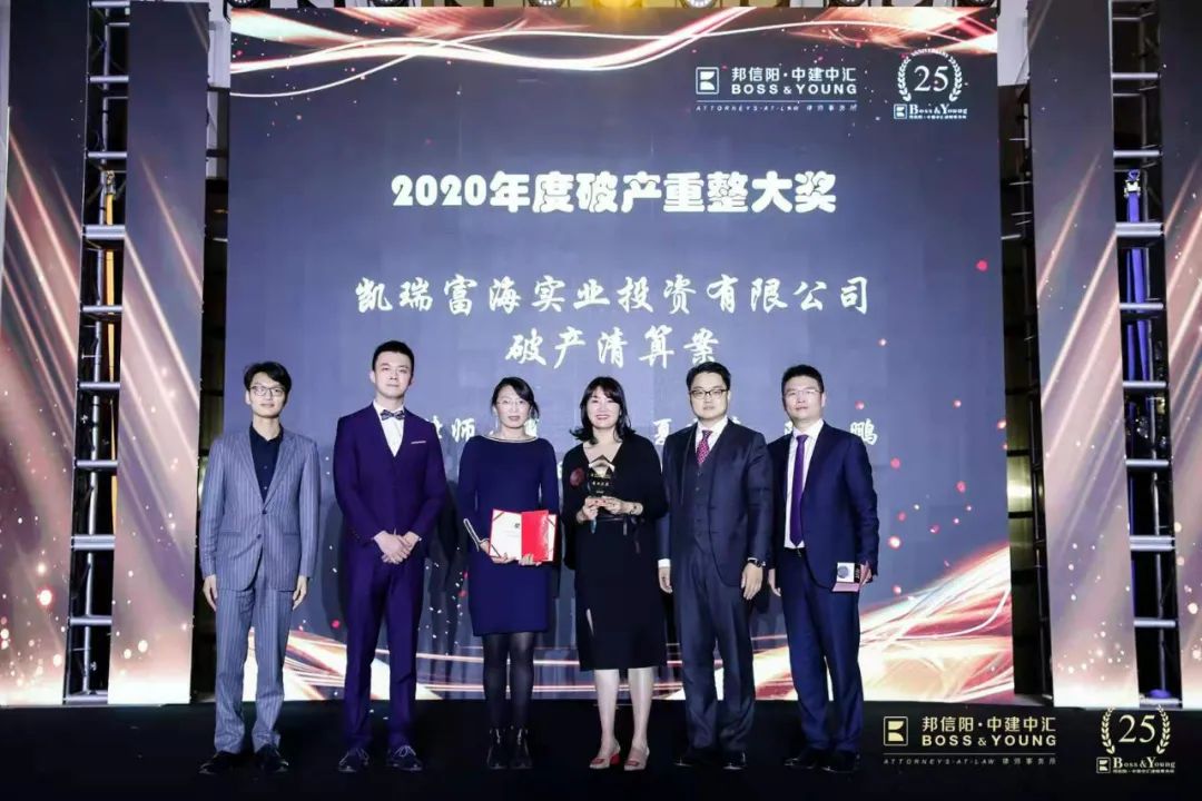凯瑞富海实业投资有限公司破产清算案荣获“2020年度破产重整大奖”,承办律师为夏玲律师、夏晓萍律师、陈鹏律师、赵明亮律师及李思涵律师。
