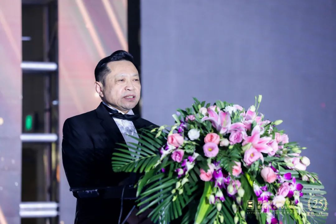 邦信阳中建中汇成立25周年庆典大会上,本所主任徐国建博士首先代表邦信阳中建中汇全体同仁向对各位来宾表示欢迎与感谢。二十五载难以一一言尽,徐博士以事务所初创之期的“信念”开题,简述从邦信阳中建中汇前身的四家律所深耕专业、建立基础,到强强联合、共同发展,再到如今多元开放、布局全国,邦信阳中建中汇发展历程是岁月熔金的过程,也是新中国改革开放以来岁岁繁茂的一个缩影。最后,徐国建博士对事务所未来的定位与挑战做了新的展望,对到场的来宾致以衷心的祝愿。