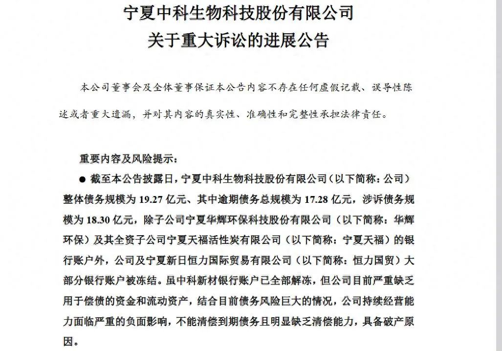 5. *ST宁科债务压顶逾期17亿元,银行账户被冻结,面临破产风险