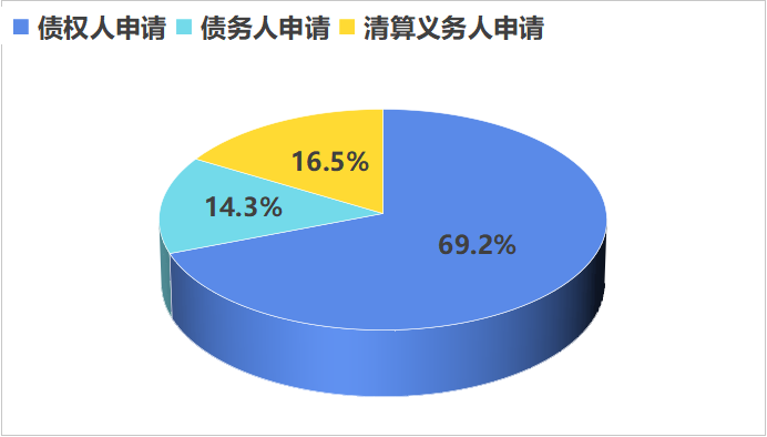 强制清算申请中,股东申请占99.7%;管理人及清算组申请占0.3%。