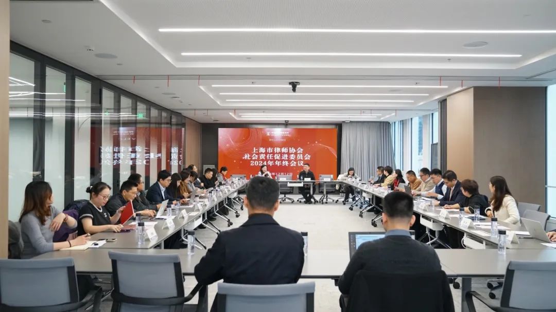 2024年12月12日下午,上海市律师协会社会责任促进委员会2024年年终会议在邦信阳律师事务所召开。会议由社会责任委主任孙彬彬主持,上海市律师协会副会长金冰一、副秘书长潘瑜、业务部主任陈一沁、监事陈李毅、社会责任委副主任许海霞、魏建平、张承飚等参加本次会议。