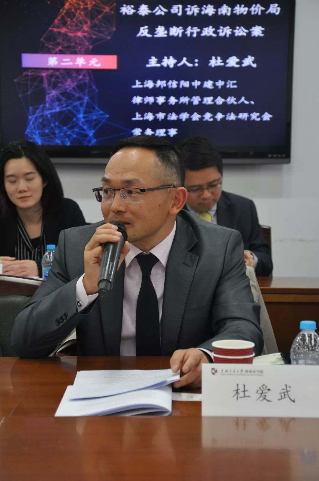第二单元由上海邦信阳中建中汇律师事务所管理合伙人、上海市法学会竞争法研究会常务理事杜爱武律师主持。第二单元的研讨围绕“海南裕泰科技饲料有限公司因纵向垄断协议行政处罚诉海南省物价局一案”展开。