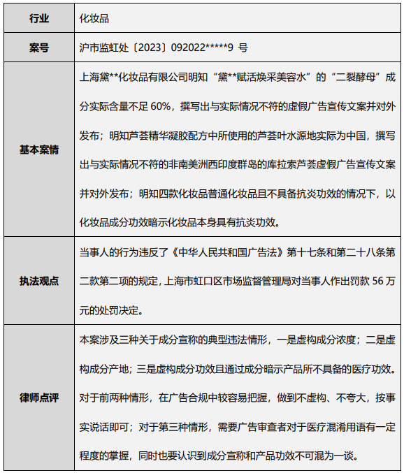案例10:化妆品广告宣称虚假被处罚56万元