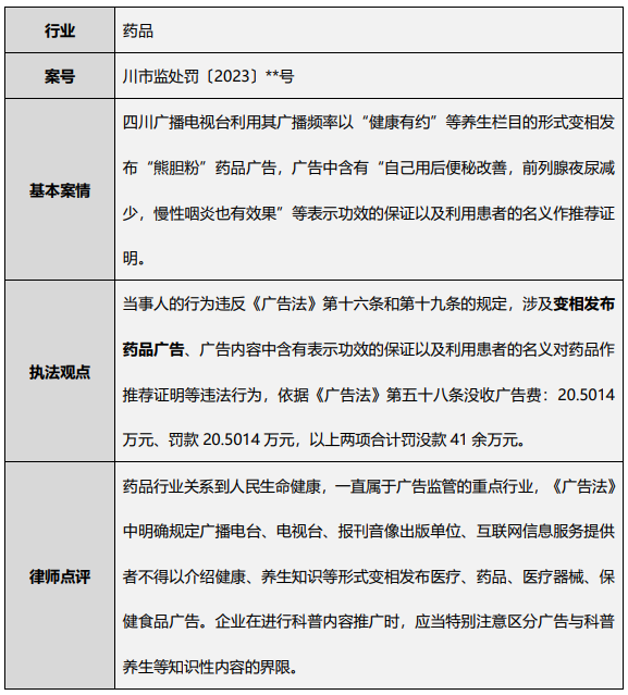 案例2:省级电视台违法发布药品广告被处罚41万元