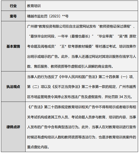 我们基于监管部门关注的重点行业选取了十个2023年度的违法典型案例,以期通过案例解读执法重点与值得企业参考的合规要点,为企业做好日常广告营销活动合规工作提供一定的参考价值。