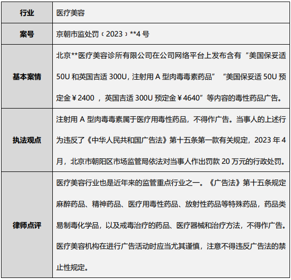 案例7:医美公司发布毒性药品广告被处罚20万元