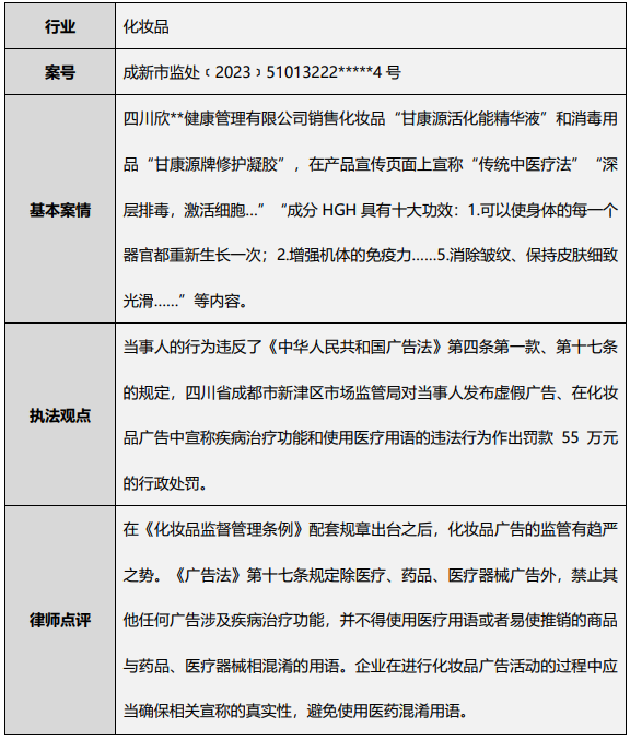 案例8:化妆品广告宣传疾病治疗功能被处罚55万元
