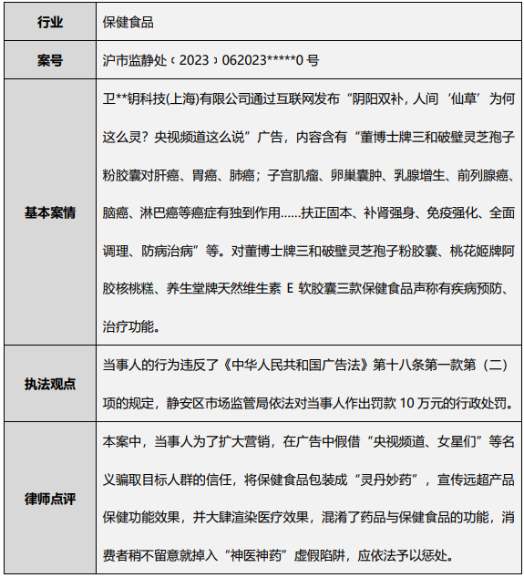 案例3:宣传保健食品具有疾病预防、治疗功能被罚款10万元