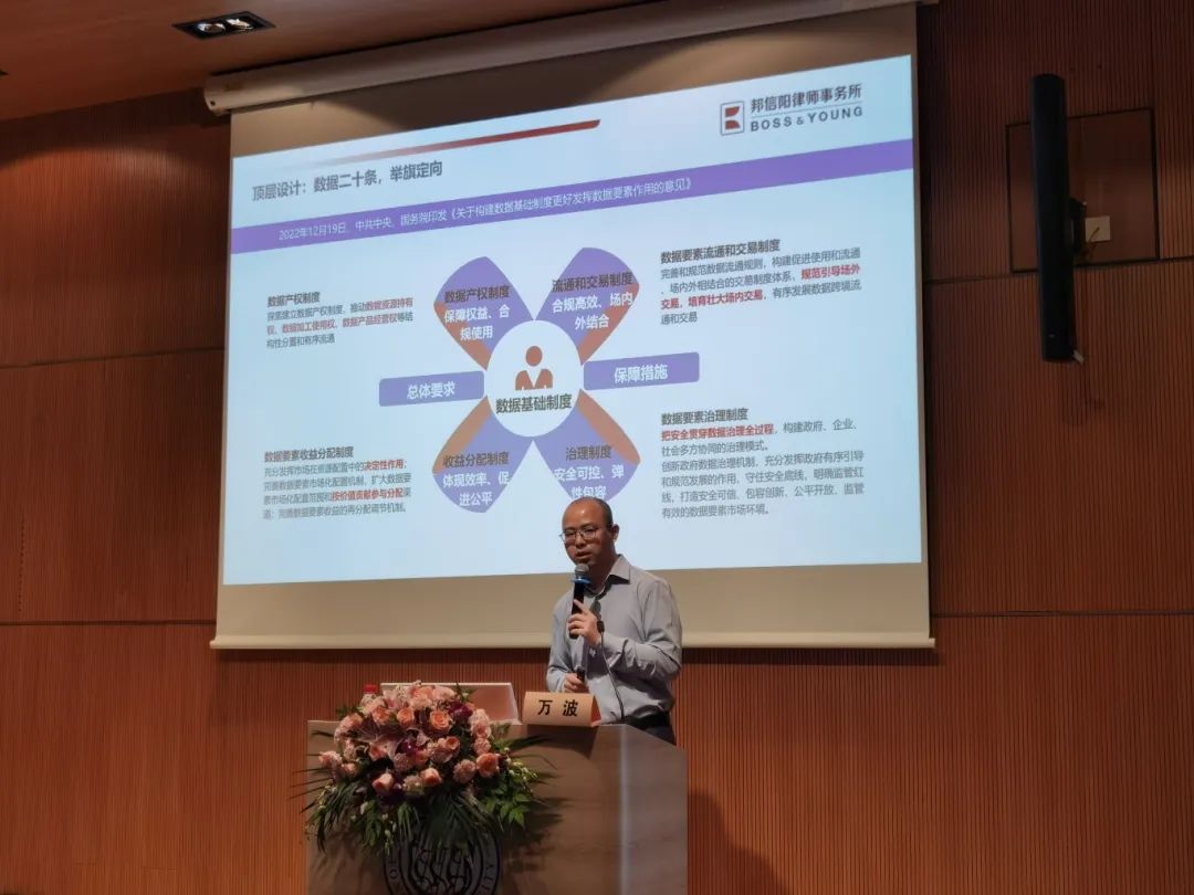 2025年5月26日,为进一步提升农业农村系统干部数字化能力,有效推动农业农村数字化转型,上海市农业农村委员会组办上海市农业农村系统干部数字化能力提升班。邦信阳合伙人万波律师受邀参会分享主题“数据要素价值挖掘与网络数据合规——以农业为视角”,内容包括数据合规法律法规体系梳理讲解、数据要素赋能农业生产典型项目介绍、个人信息保护等。