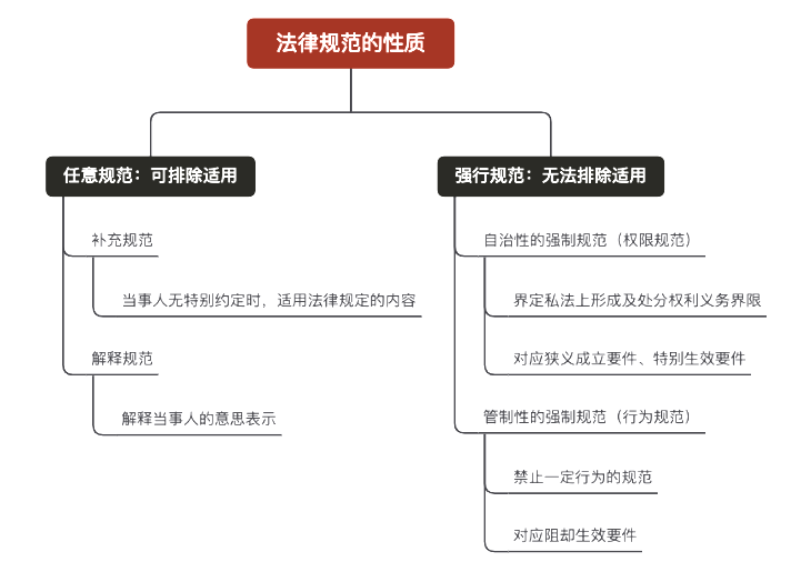 [12] 参见苏永钦:《走入新世纪的私法自治》,中国人民大学出版社2002年,第14-36页。图片内容系笔者根据苏老师文章的理解制作,台湾地区对“强制”“强行”的用词习惯与大陆地区存在差异,仍需注意。另可参见参见朱庆育:《民法总论》(第二版),北京大学出版社,第50-68页。