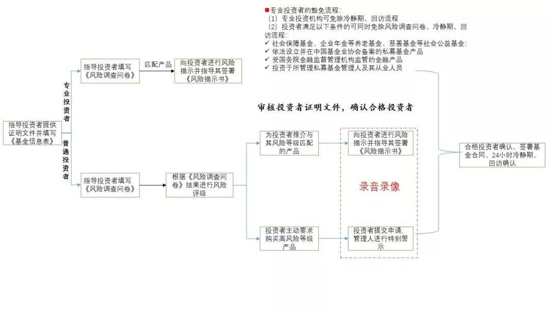 当基金管理人明确各类合格投资者的标准后,展开审核投资者的相关材料并对投资者展开一系列的调查成为其履行适当性义务承前启后的关键步骤,如下图所示: