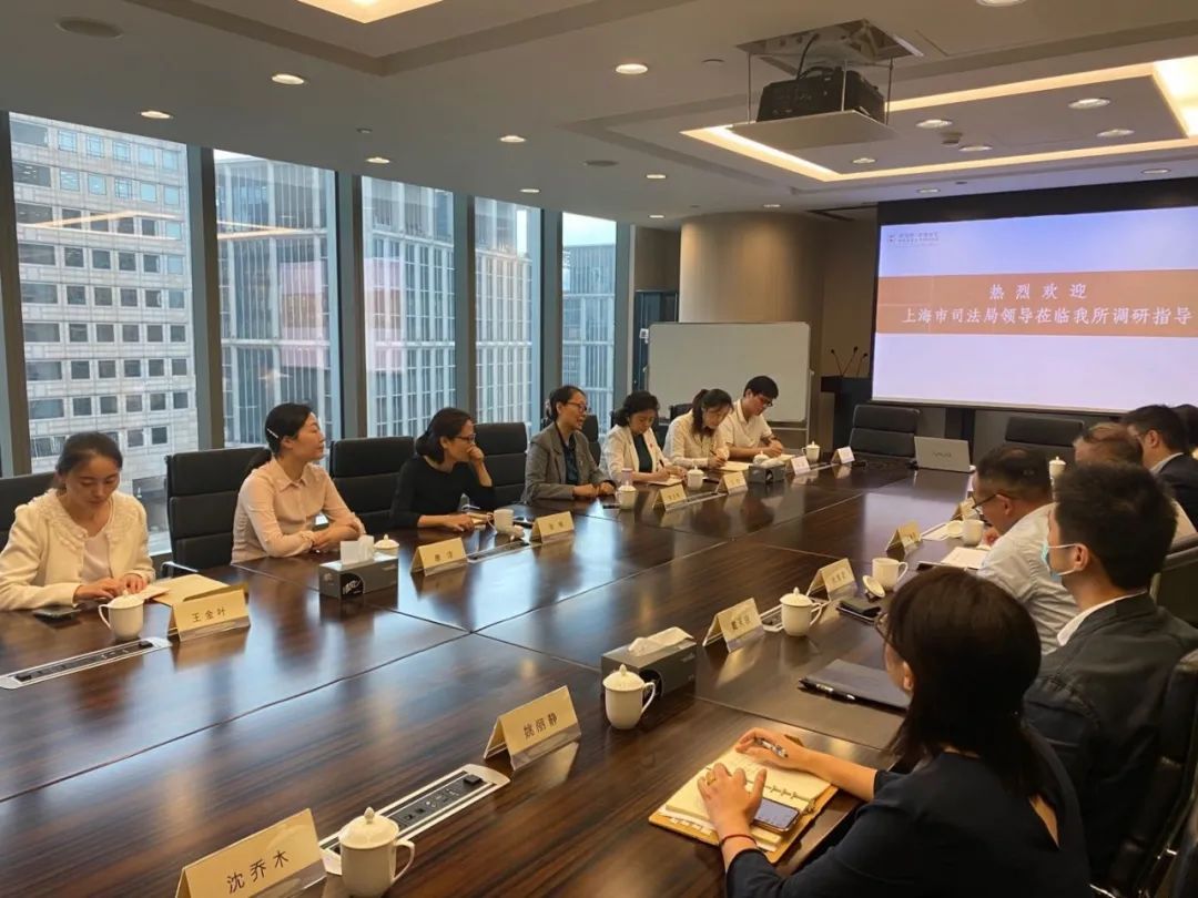 2020年9月17日上午,上海市司法局党委副书记、市律师行业党委书记刘卫萍,市司法局律工处副处长、市律师行业党委办公室主任张铭,市司法局律工处副处长唐洁,黄浦区司法局党委副书记、区律师行业党委书记王忠等一行莅临上海邦信阳中建中汇律师事务所调研并指导工作。