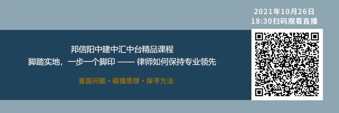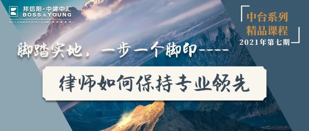 2021年10月26日(周二)18:30,邦信阳中建中汇中台精品课程第七期邀请住建部《完善工程组织实施方式》课题组组长、建纬研究院院长朱树英律师,围绕“脚踏实地,一步一个脚印——年轻律师如何保持专业领先”主题展开了精彩分享并与在场观众热烈互动。本期课程由邦信阳中建中汇陆国飞律师、杜爱武律师主持。