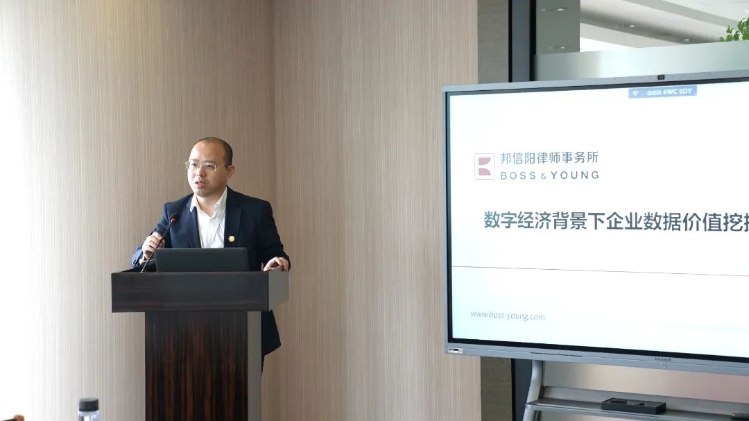 邦信阳律师事务所合伙人万波律师就“数字经济背景下企业数据价值挖掘和资产化的法律挑战”作主题分享。万律师从特定的数字化业务场景切入,分析不同场景下的数字资产和可挖掘的方向,并针对数据资产化可能面临的几大法律问题做深入分析,围绕交易存证、个人信息保护、AI算法合规、数字化营销等方面进行了深入分享。