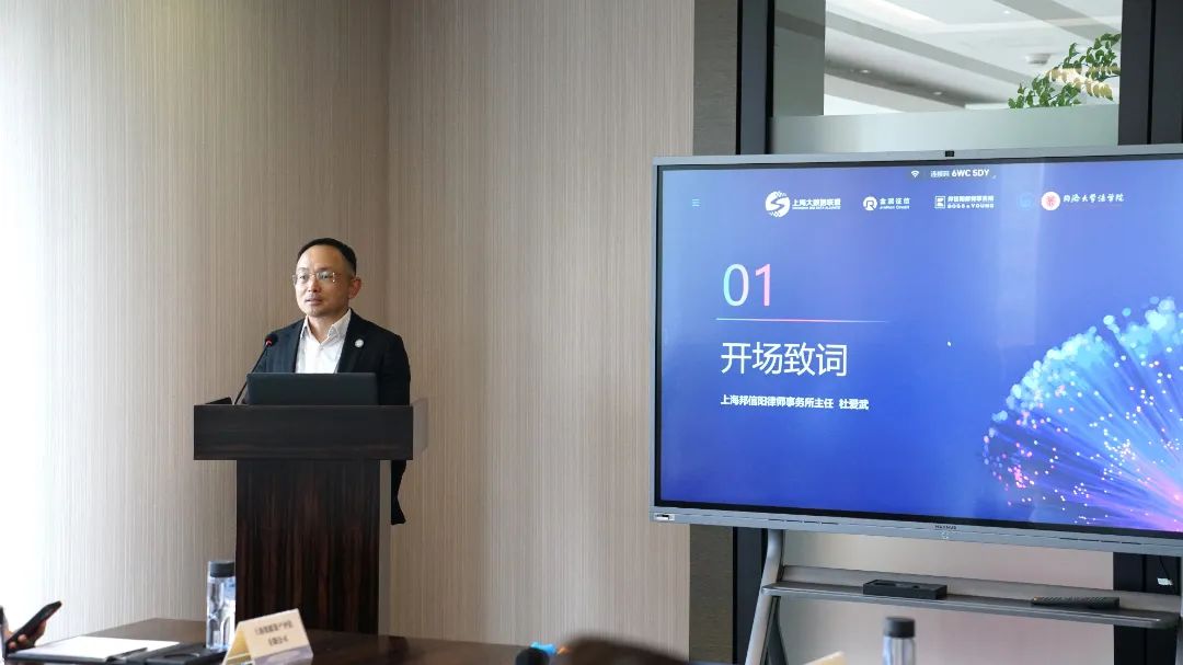 邦信阳律师事务所主任杜爱武律师为研讨会致辞。杜律师对当下数据资产化的相关立法规则、学术研究等方面的进展做了简要介绍,并期待本次活动中学界代表、一线业务代表以及企业代表能够畅所欲言,有所收获。
