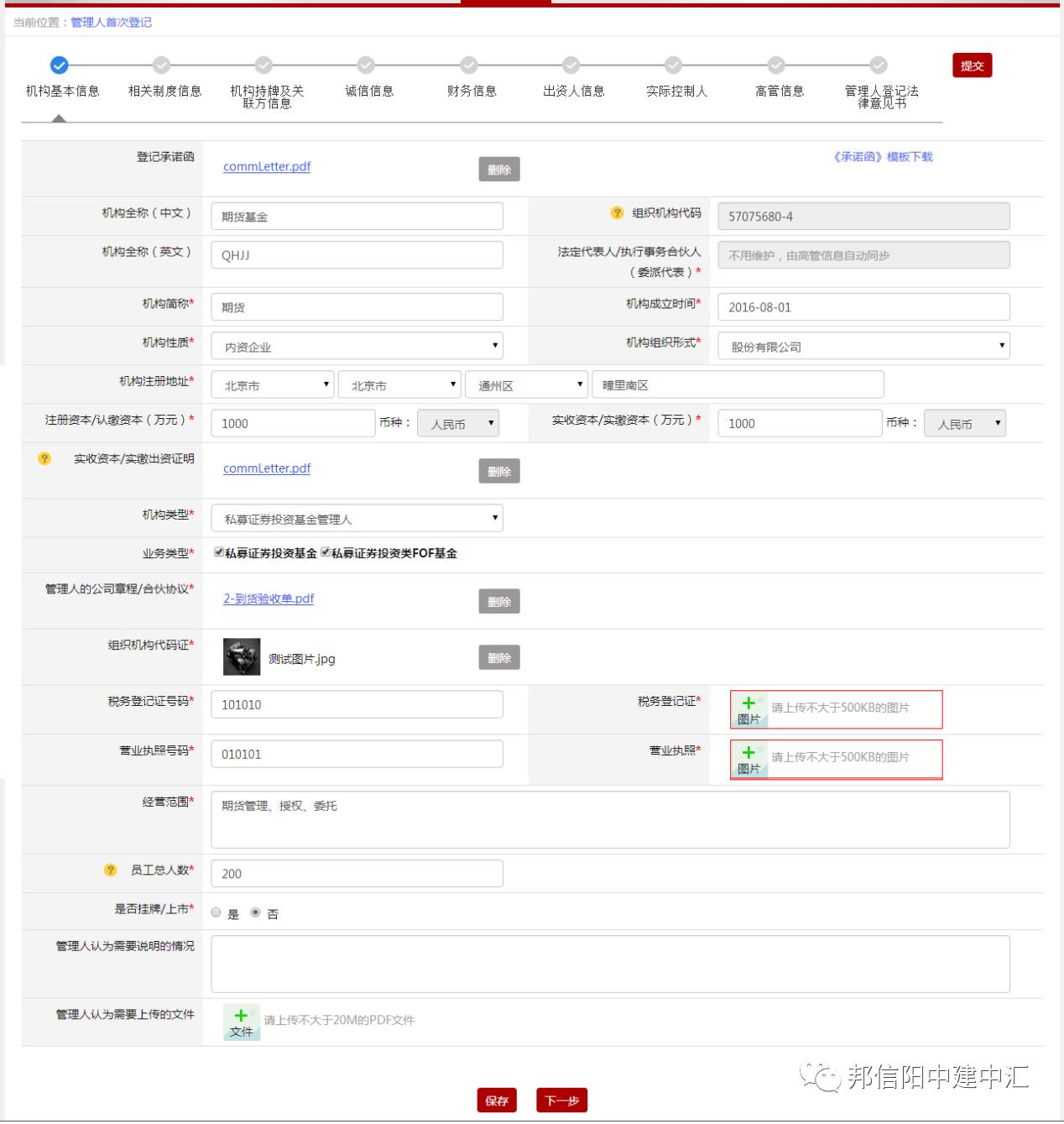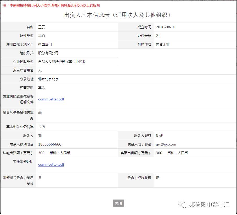 在报送的机构基本信息中,私募基金管理人在申请备案登记前,会比较关心基金业协会对其股东认缴的注册资本金的额度要求,及注册资本金是否需要其股东全部实际缴纳?在《关于进一步规范私募基金管理人登记若干事项的公告》发布的初期,私募基金管理人的实缴注册资本金为人民币100万元,也有可能通过基金业协会的审核,但是在资管报送平台上线后,基金业协会基本上已经明确了实缴注册资本金不得低于人民币200万元的标准,且不排除基金业协会将会进一步提高私募基金管理人实缴注册资本金标准的可能性(截止2016年12月20日,已经出现申请私募基金管理人备案登记的申请机构因实缴注册资本金为人民币200万元而被基金业协会要求增加实缴注册本金的案例)。